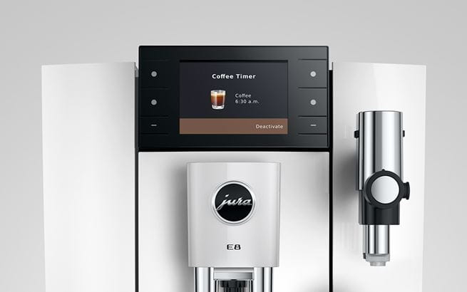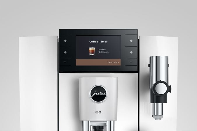 Die E8 fasziniert zusätzlich mit intelligenter Technologie wie dem Coffee Timer. Dank ihm lässt sich der Morgenkaffee über die App J.O.E.® programmieren und frisch gemahlen und zubereitet gleich nach dem Aufstehen genießen.