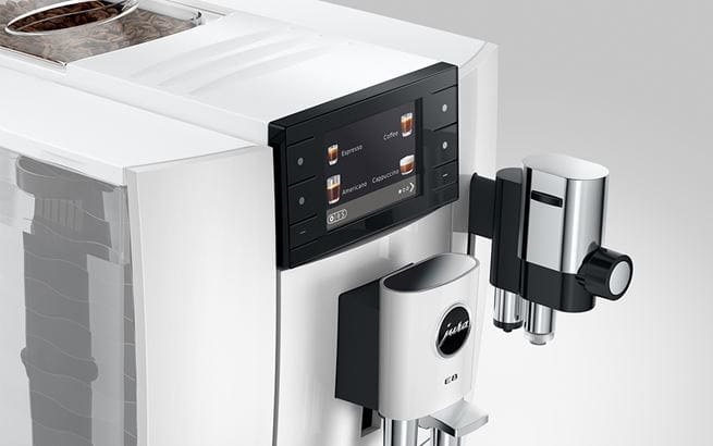 Die E8 strahl mit Stil und positioniert sich dank ihrer 27-cm-Breite auch in kleineren Küchen mit eindrucksvoller Wirkung; im Design und Kaffee-Erlebnis.