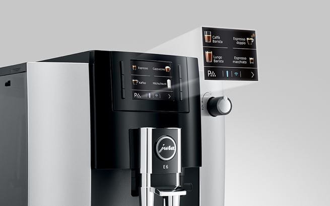 Die E6 zeichnet sich durch einfache Bedienung, ein hervorragendes Kaffeeresultat und klares Design aus. Frontal angeordnete Tasten und ein modernes Farbdisplay führen auf Knopfdruck direkt zum Ziel.
