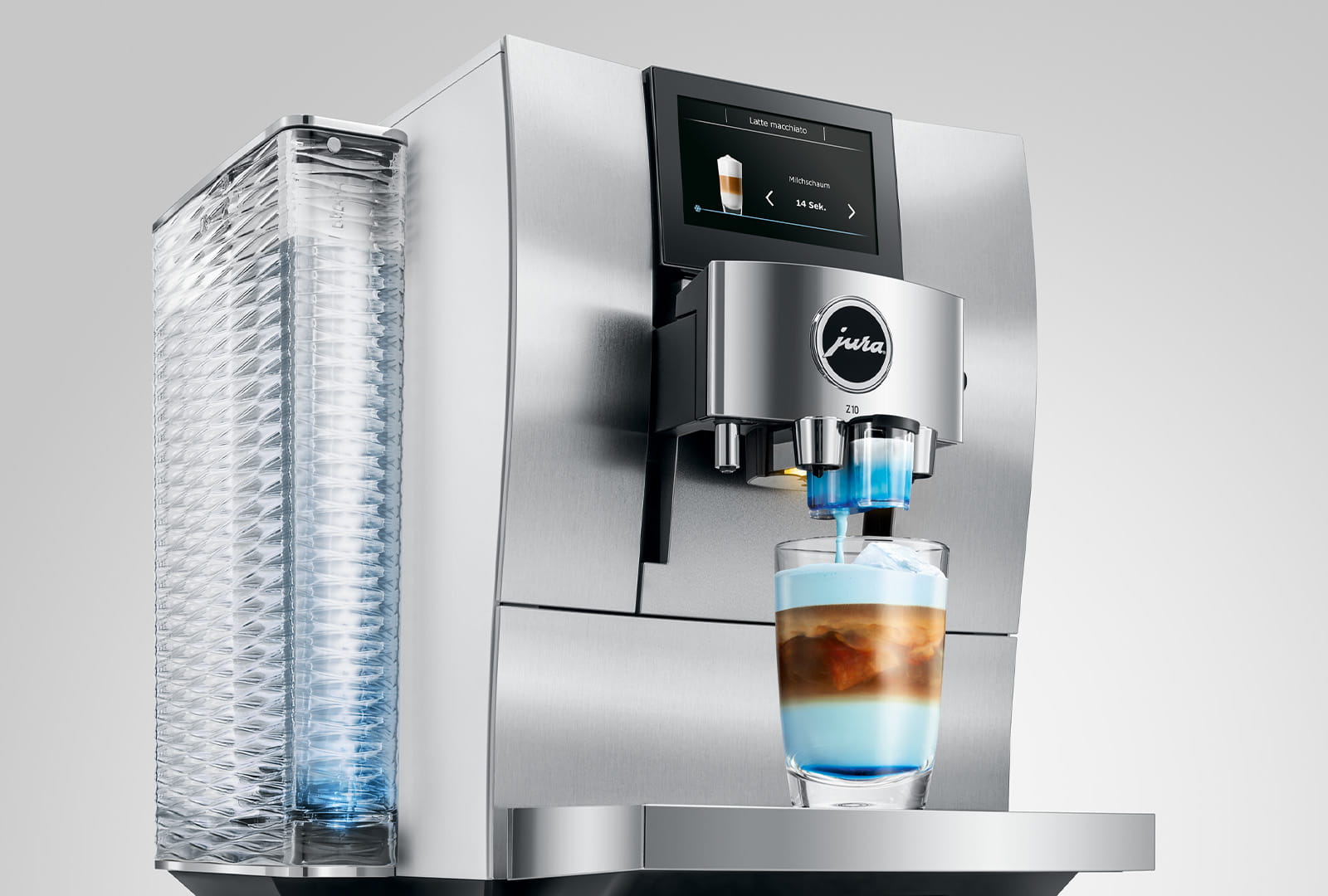 Le design, associé à un choix judicieux de matériaux, contribue activement à la durabilité d’un produit. Chez JURA, nous pensons nos machines de façon à ce que leur esthétique garde une tonalité fraîche et moderne au fil des ans – pour la plus grande fierté de leur propriétaire. Avec leur qualité sans compromis, leurs matériaux durables de qualité et leur finition d’une extrême précision, nos machines allient tout au long de leur vie le plaisir des yeux à celui du palais. La façade aluminium complexe de la Z10, de forme convexe-concave, témoigne d’un savoir-faire artisanal de très haut niveau. Le réservoir d’eau à l’élégant design ondulé et le porte-filtre harmonieusement conçu ne sont que deux exemples de l’attention qui a été portée au moindre de ses détails. Et pour comprendre ce que la qualité signifie pour JURA, il suffit de toucher la Z10.